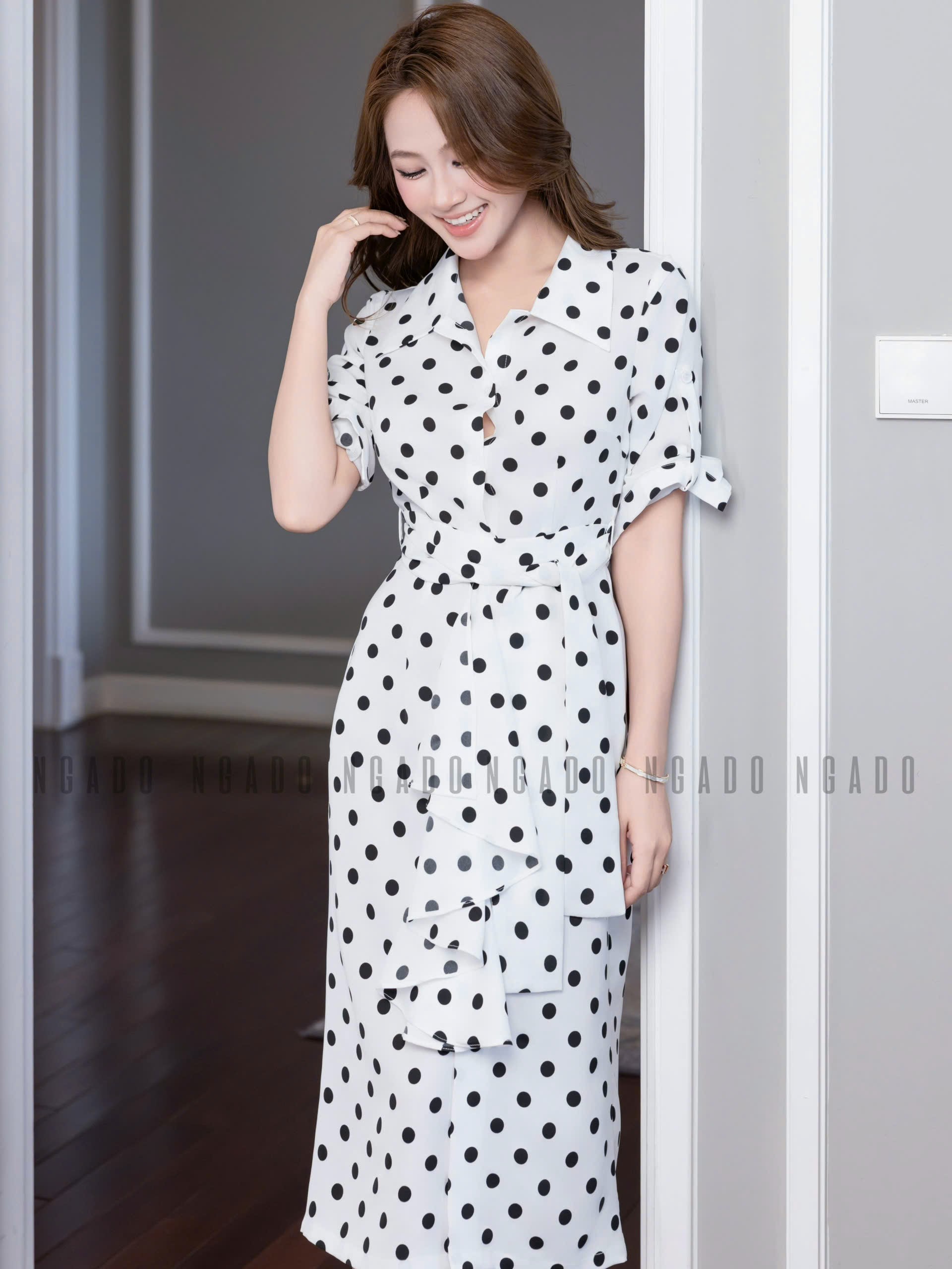 ✨Đầm sơ mi chấm bi tay lửng NGADO , đầm sơ mi , đầm chấm bi , đầm kiểu