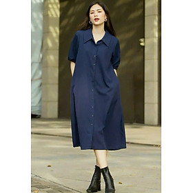 ✨Đầm sơ mi xanh navy NGADO , đầm sơ mi rộng , đầm sơ mi Nữ