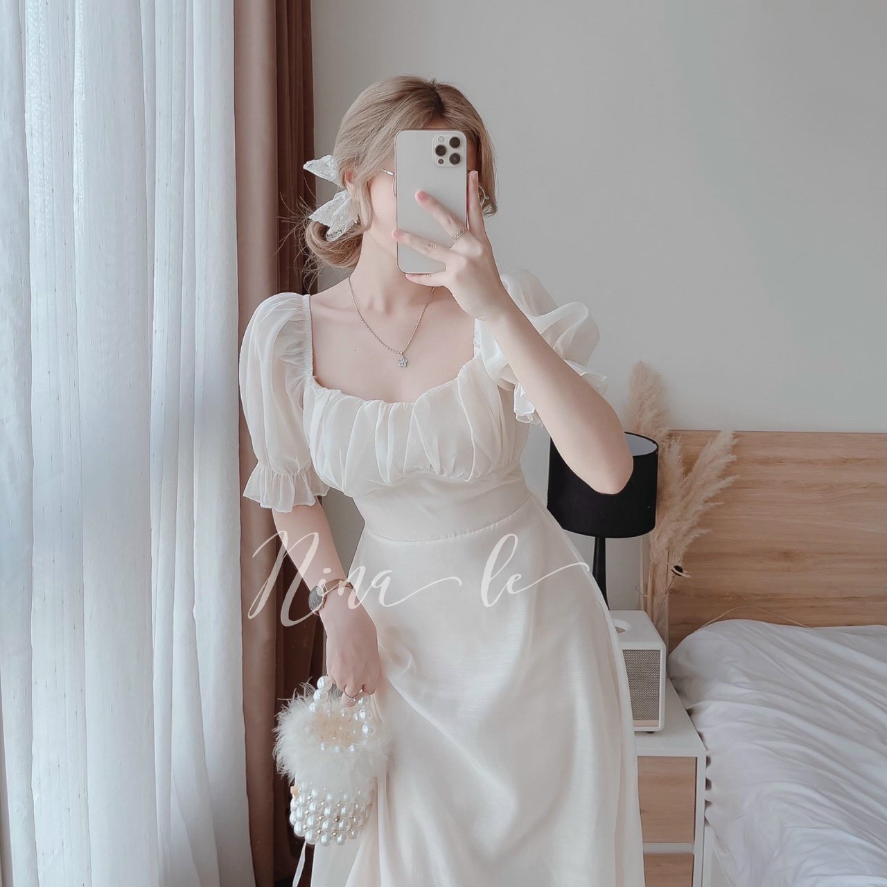 D4980] Váy thiết kế ren cúc bọc tay bồng pha chân tơ dáng dài Shop về 2 size S.M 2 màu trắng và kem Sản phẩm này là tài sản cá nhân được bán bởi