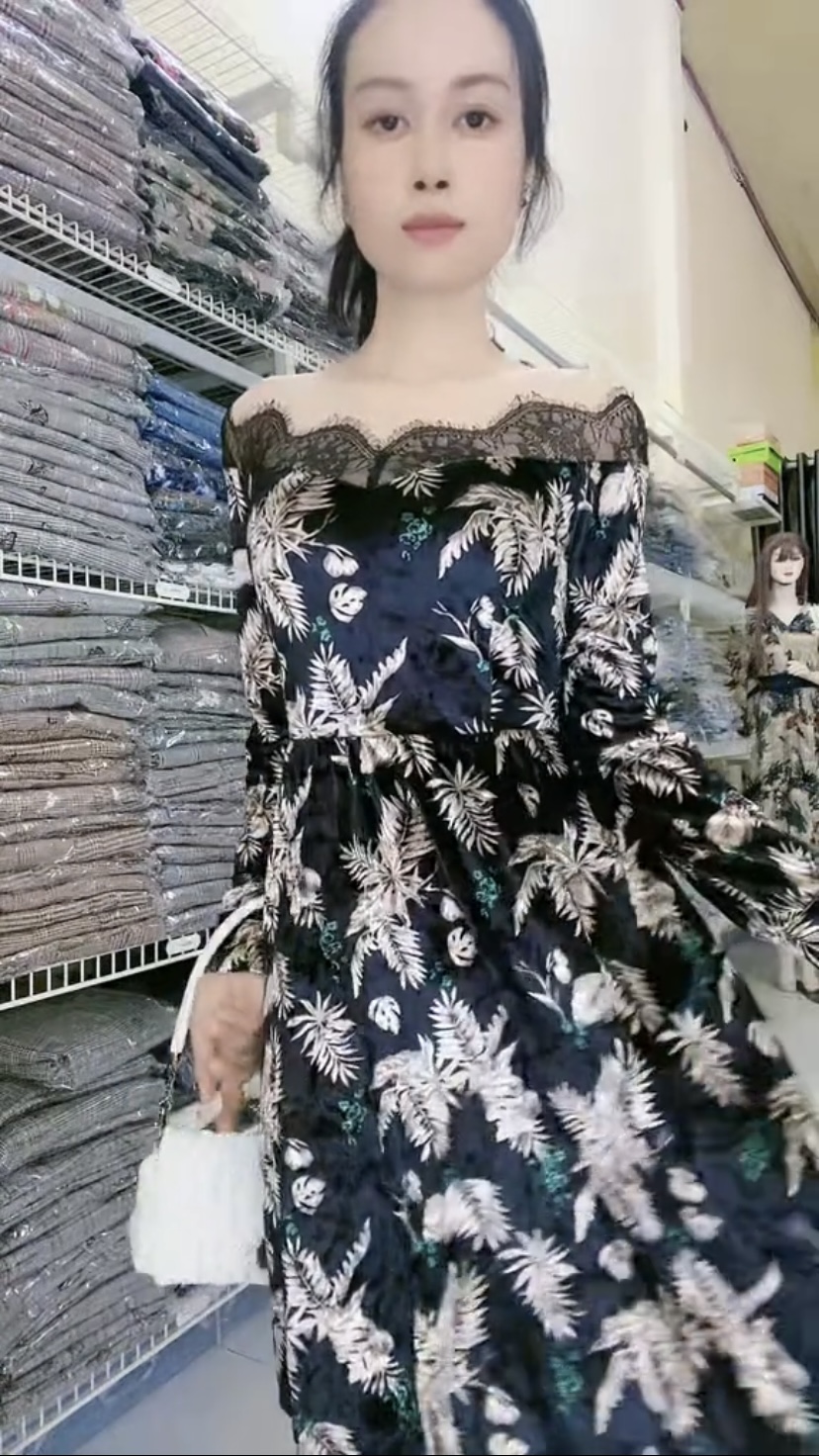 ✨Đầm trễ vai cổ màu nude trùng màu da kín đáo họa tiết chiếc lá trẻ xinh khác biệt.