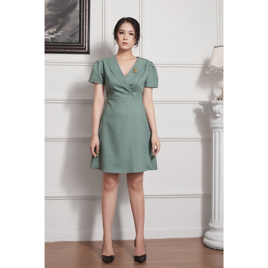 Mua tại TiktokĐầm nữ dáng xòe, cổ tim màu xanh lá nhạt, chất lụa hàn quốc