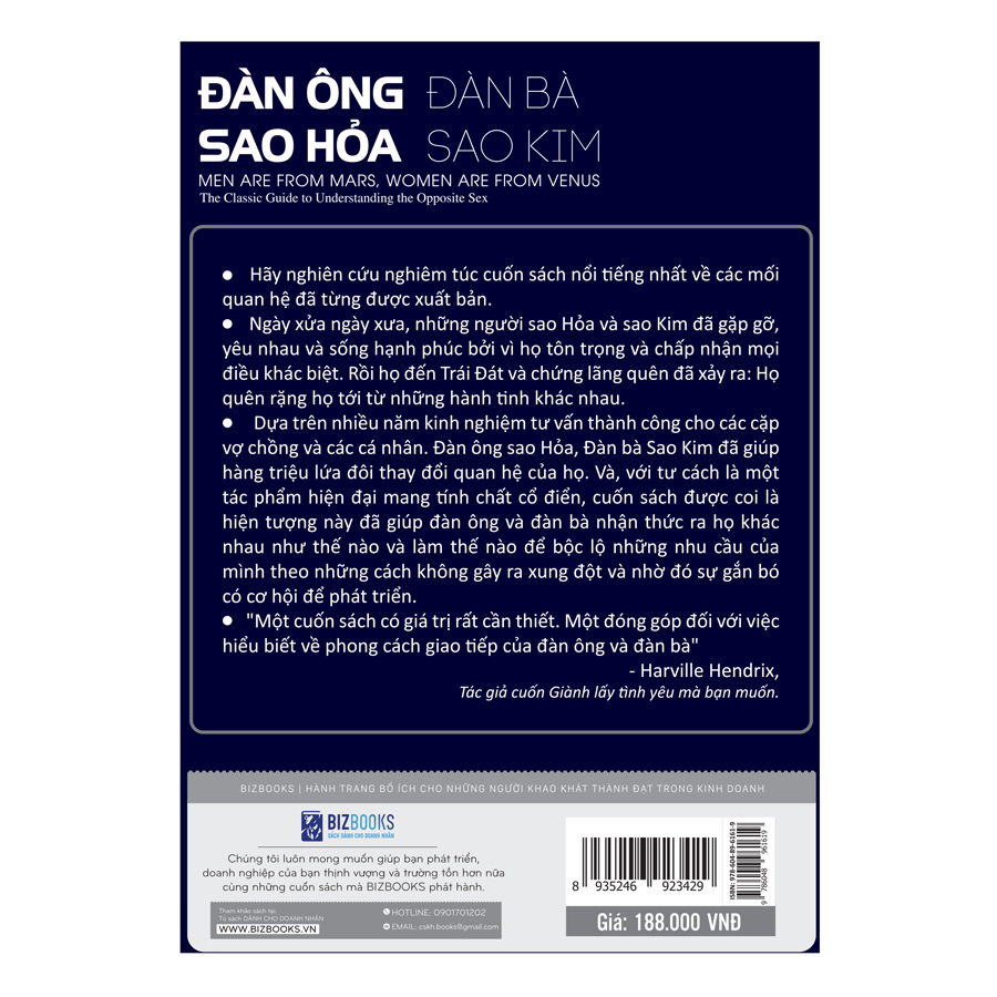 Đừng để những khúc mắc không tên khiến tình yêu đi xa mất! “Đàn Ông Sao Hỏa, Đàn Bà Sao Kim” chính là chìa khóa để bạn hiểu người ấy sâu hơn và yêu thương một cách hiệu quả hơn.