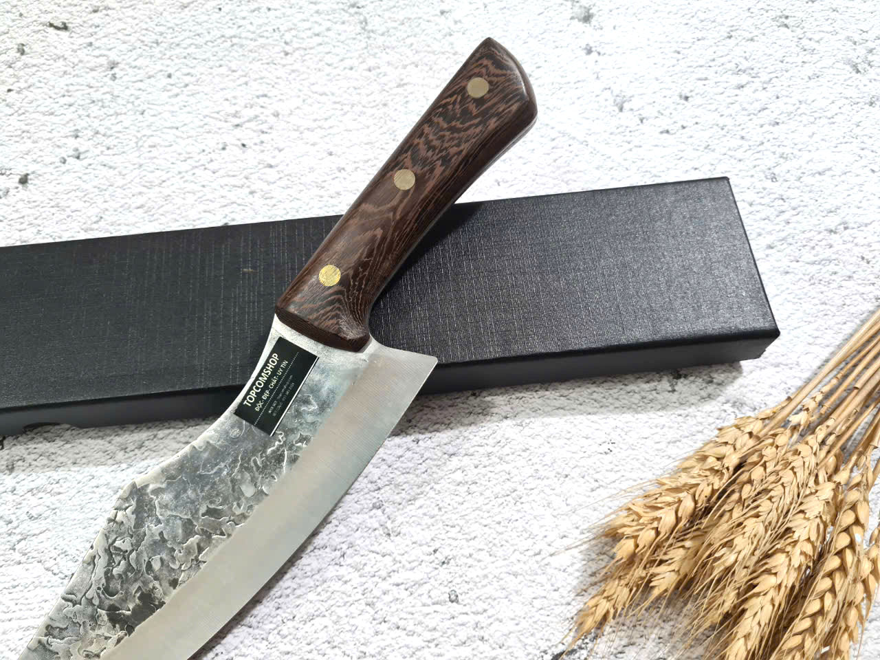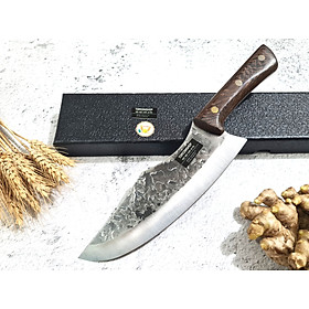 -THÔNG TIN SẢN PHẨM: Chiều dài tổng thể: 29.5cm, Chiều dài lưỡi: 19.5cm ,Chiều rộng lưỡi: 5cm Độ dày: 2.5MM, CHẤT liệu lưỡi: 5Cr15MOV (thép 5 crom 15 molypden vanadi) Chất liệu CÁN: gỗ Cánh gà NẶNG : 2.5 lạng Mặt D dập chìm hoa văn rất đẹp