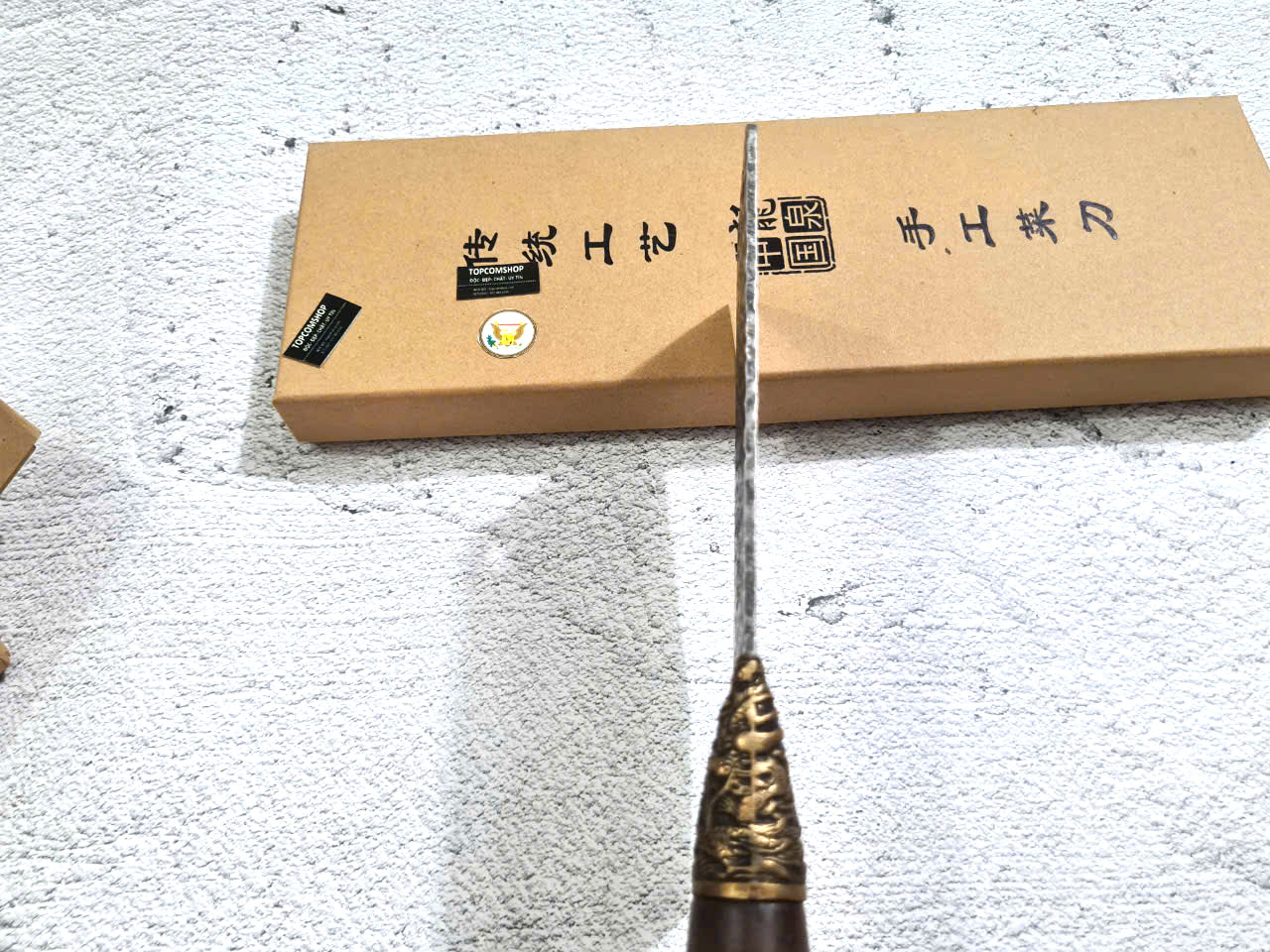 Dao Phúc Sen - Dao Chặt Gà Cán Cẩm Khâu Đồng G05D - Kích thước: lưỡi: 23cm, cán: 13cm, rộng: 8,5cm-9cm, dầy: 0,3, trọng lượng: 500g - 600g - Chức năng: sử dụng chuyên chặt