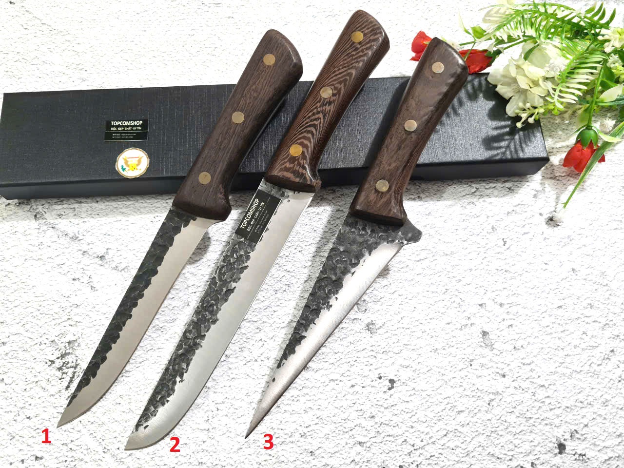 [ MUA 3 TẶNG 2 ] BỘ 3 DAO THÉP CAO CẤP CHẶT, THÁI, THÁI LỌC, TẶNG 2 ĐÁ MÀI CHUYÊN DỤNG