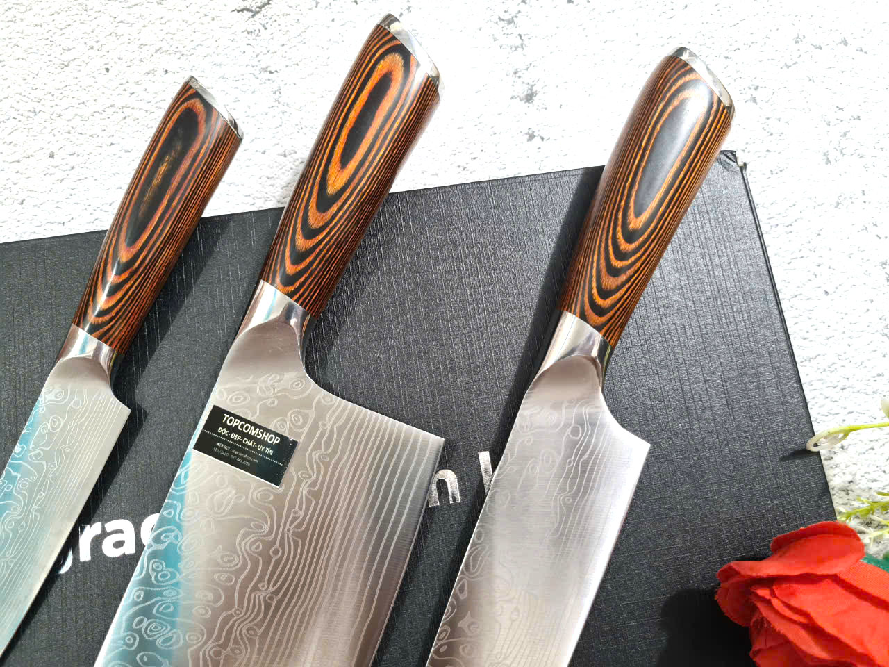 ✨DAO - BỘ 3 DAO BẾP NHẬT BẢN THÉP DAMASCUS MÃ A1 DT2 nt topcomshop vn