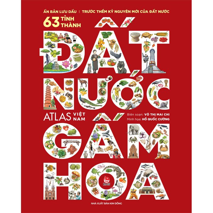 VIỆT NAM CHÚNG TA - KẾT TINH CỦA LỊCH SỬ HÀO HÙNG, THIÊN NHIÊN TƯƠI ĐẸP CÙNG SỨC SÁNG TẠO VÔ BIÊN CỦA CON NGƯỜI. Bạn biết không, đất nước của chúng mình đẹp lắm. Từ những dòng thác tung bọt trắng xóa vùng Tây Bắc đến dòng Cửu Long chở nặng phù sa miền Tây Nam Bộ, từ núi rừng bao la nơi sinh sống của nhiều loài động vật quí hiếm đến vùng hải đảo nơi có những giàn khoan tung bay lá cờ đỏ sao vàng, từ những miền đất cổ kính với bề dày lịch sử đến các thành phố trẻ trung tràn đầy sức sống... tất cả hội tụ trên dải đất hình chữ S tươi đẹp, như một di sản tuyệt vời qua hàng ngàn năm dựng nước và giữ nước mà giờ đây cha ông trao lại cho chúng mình. Hành trình đi dọc theo đất nước từ Bắc vào Nam, lên rừng xuống biển cũng là hành trình khám phá nền văn hóa đặc sắc và đa dạng của cộng đồng 54 dân tộc anh em. Dù chúng mình đang ở nơi đâu trên dải đất hình chữ S, thì bạn và tôi luôn hiểu rằng con đường mình đang đi, món ăn mình đang thưởng thức, công trình mình đang chiêm ngưỡng đều mang theo dấu ấn của lịch sử, của tinh hoa văn hóa đúc kết từ bao đời. Tất cả tạo nên những hoa văn đặc sắc, vừa khác biệt, vừa hòa quyện vào nhau, tạo nên vẻ đẹp lung linh của đất nước gấm hoa. Ngày 12/6/2025 đánh dấu một cột mốc lịch sử của dân tộc khi Quốc hội thông qua Nghị quyết số 202/2025/QH15 - "sắp xếp lại giang sơn" để cả dân tộc bước vào tương lai mới. Nhớ về quá khứ để hướng tới tương lai, Nhà xuất bản Kim Đồng phát hành ấn bản Đất nước gấm hoa phiên bản đặc biệt, lưu dấu những nét văn hoá, địa lí và lịch sử của 63 tỉnh thành trước thềm kỉ nguyên mới của đất nước. Mời bạn cùng thăm lại những miền lưu dấu xuyên suốt dải đất hình chữ S xinh đẹp của chúng ta nhé! **Thông tin về tên gọi, địa giới hành chính, dân số của 63 tỉnh, thành phố trong ấn phẩm này được ghi nhận trước thời điểm Nghị quyết số 202/2025/QH15 ngày 12/6/2025 về việc sắp xếp đơn vị hành chính cấp tỉnh được Quốc hội thông qua. ---