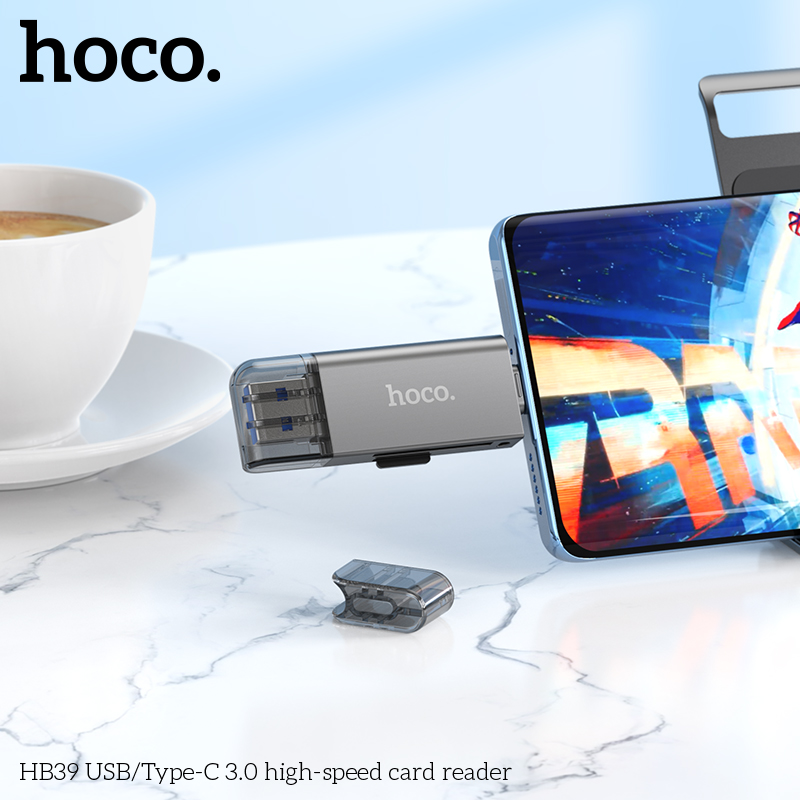 ✨Đầu đọc thẻ nhớ đa năng chuẩn 3.0 hai đầu kết nối Usb và type C cho điện thoại laptop hoco HB39 _ hàng chính hãng
