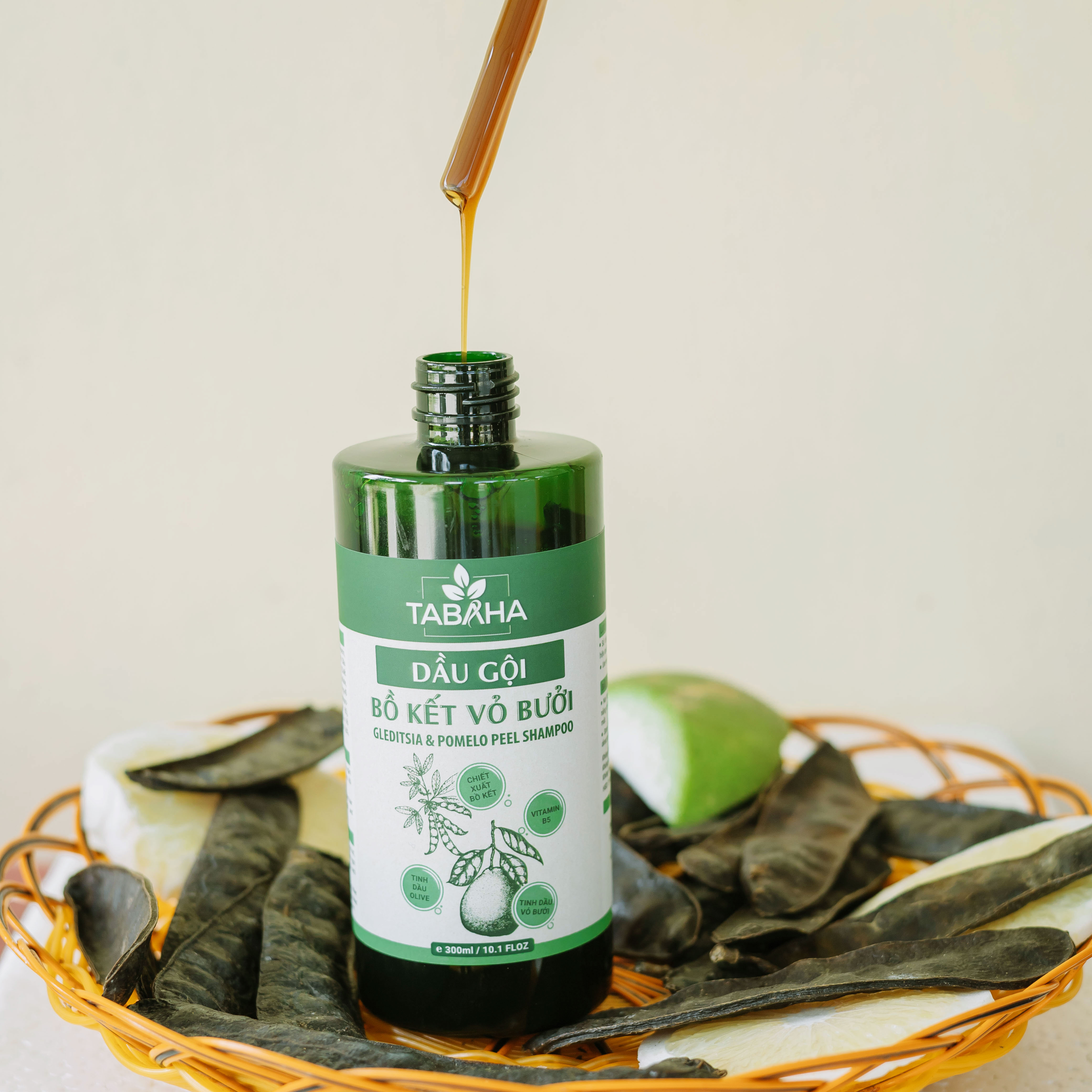 Dầu gội Bồ kết Và Vỏ bưởi TABAHA 300ml giúp giảm rụng tóc, nuôi dưỡng tóc từ sâu bên trong, cung cấp dưỡng chất giúp tóc chắc khỏe, phục hồi tóc hư tổn do tác