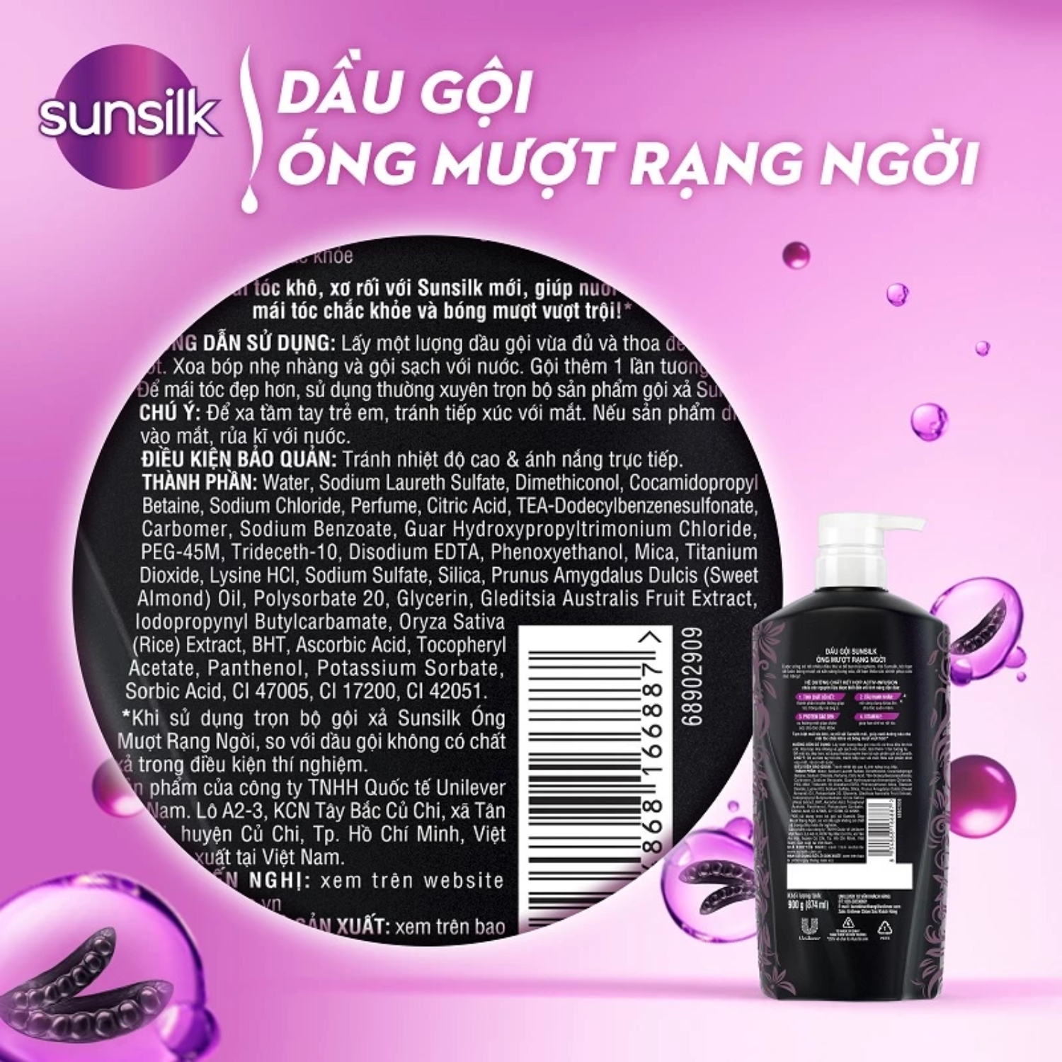 BAO BÌ THAY ĐỔI THEO TỪNG ĐỢT NHẬP HÀNG CÔNG DỤNG: Dầu gội Sunsilk Óng Mượt Rạng Ngời 900g Hệ dưỡng chất kết hợp Activ-Infusion chức các nguyên liệu được biết đến với tính năng
