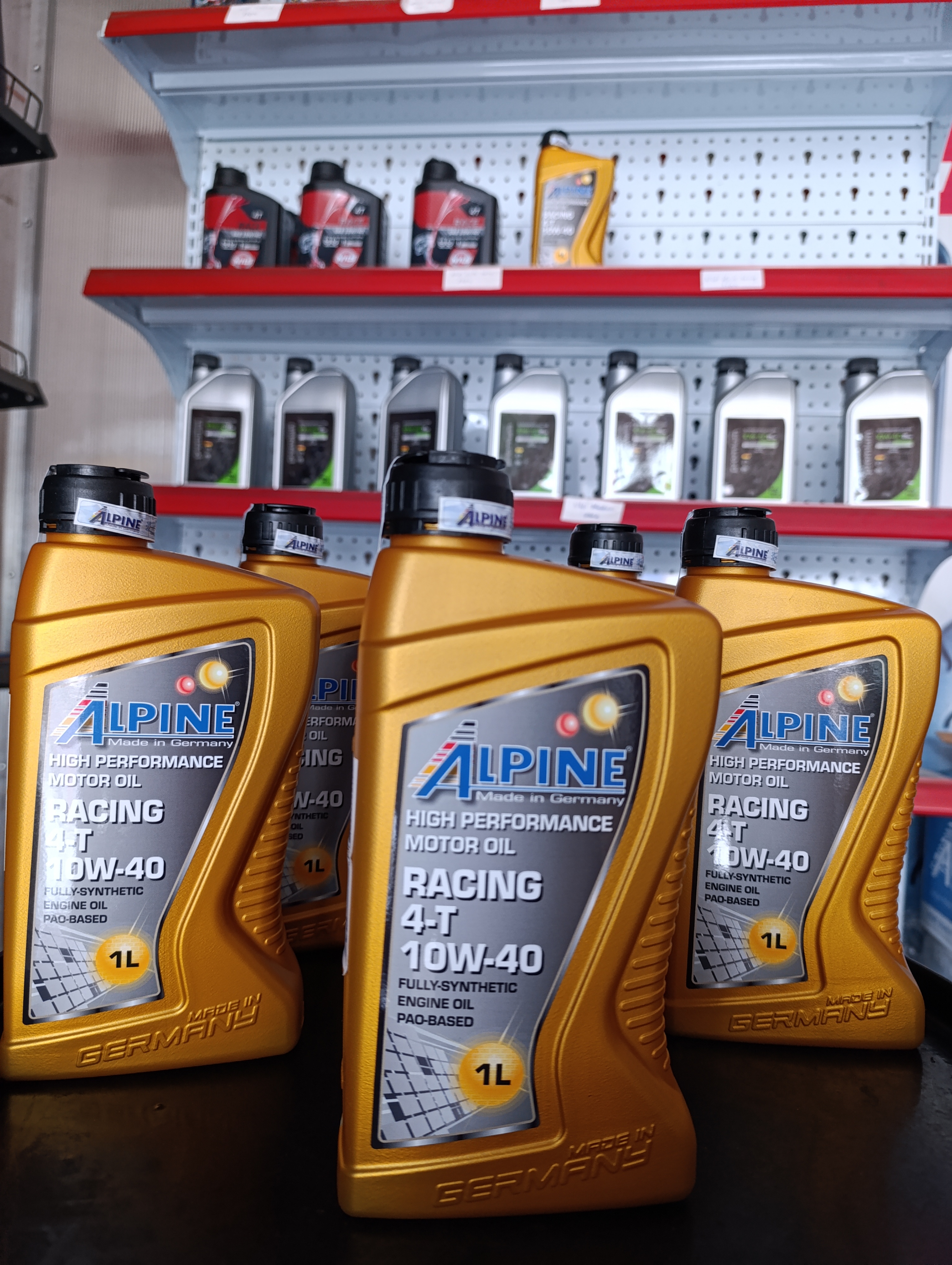 Mua tại TiktokDầu nhớt Alpine racing 4T 10W40 – PAO base thương hiệu, xuất xứ từ Đức. Sản phẩm này phù hợp cho xe số, tay côn và phân khối lớn, với độ nhớt SAE 10W40 JASO MA2. Các thành phần tổng hợp kết hợp với chất phụ gia cải tiến đảm bảo đáp ứng yêu cầu thị trường.