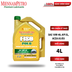 Dầu Nhớt MiennamPetro Fiso Polo 10W-40 API SL/CF-4 ACEA A3/B3 4L Bảo Vệ Và Tăng Hiệu Suất Vận Hành Động Cơ Xe Ô TôDầu Nhớt MiennamPetro Fiso Polo 10W-40 API SL/CF-4 ACEA A3/B3 4L Bảo Vệ Và Tăng Hiệu Suất Vận Hành Động Cơ Xe Ô Tô