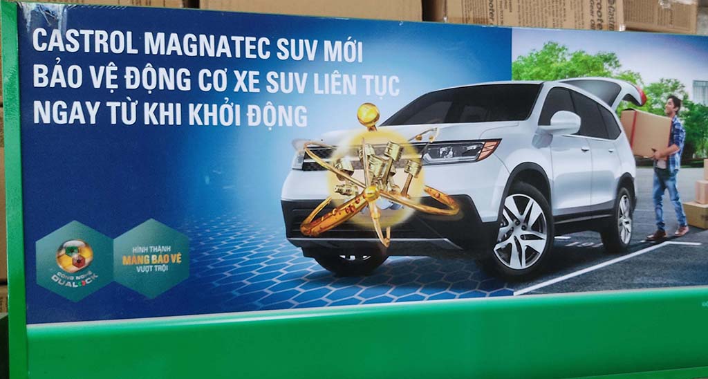 • Tải trọng nặng và kéo theo xe khác – Tải trọng đặt lên các chi tiết máy tăng lên, nhiệt độ vận hành cao hơn. GIẢI PHÁP Đó chính là lý do chúng tôi phát triển Castrol MAGNATEC SUV - sản phẩm bảo vệ toàn diện! Castrol MAGNATEC SUV với công nghệ DUALOCK đột phá, liên kết chặt chẽ các phân tử bảo vệ độc đáo trên bề mặt chi tiết, hình thành màng dầu bảo vệ vượt trội nhằm cung cấp khả năng bảo vệ động cơ trong điều kiện lái xe hiện đại, chống mài mòn tốt hơn 50% trong quá trình làm nóng máy, chạy dừng và tải trọng nặng. LỢI ÍCH Bảo vệ động cơ xe SUV liên tục ngay từ khi khởi động.