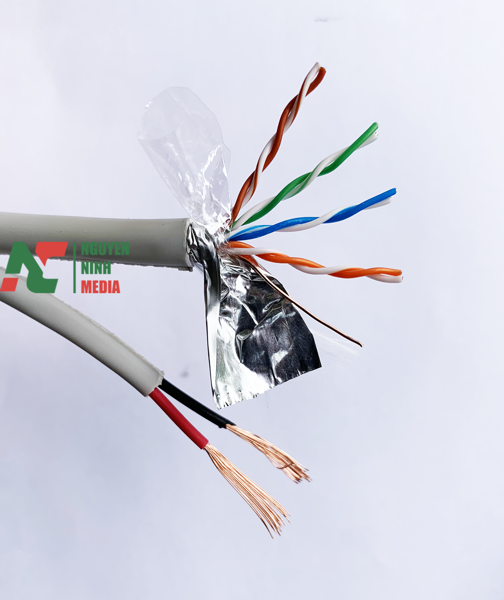 • Cáp mạng kèm nguồn Cat5e FTP + 2C có chống nhiễu (Cable Category 5 enhanced) là loại cáp xoắn đôi, đường kính lõi CCA tiêu chuẩn 24AWG (0.511mm). Cat5e Là loại cáp cao cấp hơn so với loại cáp mạng cat5 về các tiêu chuẩn trong việc truyền tải dữ liệu. Cáp mạng Cat5e giảm thiểu tối đa hiện tượng nhiễu chéo (cross-talk) và có thể đáp ứng tương đối tốt đường truyền tín hiệu Gigabit Ethernet (tốc độ truyền tín hiệu 1000Mbps).