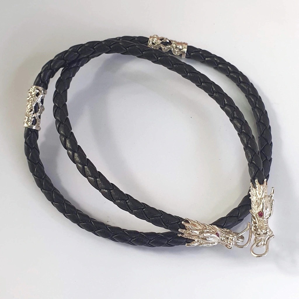 Dây Chuyền Vòng Cổ Dây Da Bọc Bạc Ta Nam Hình Rồng Bạc Hiểu Minh DDN031