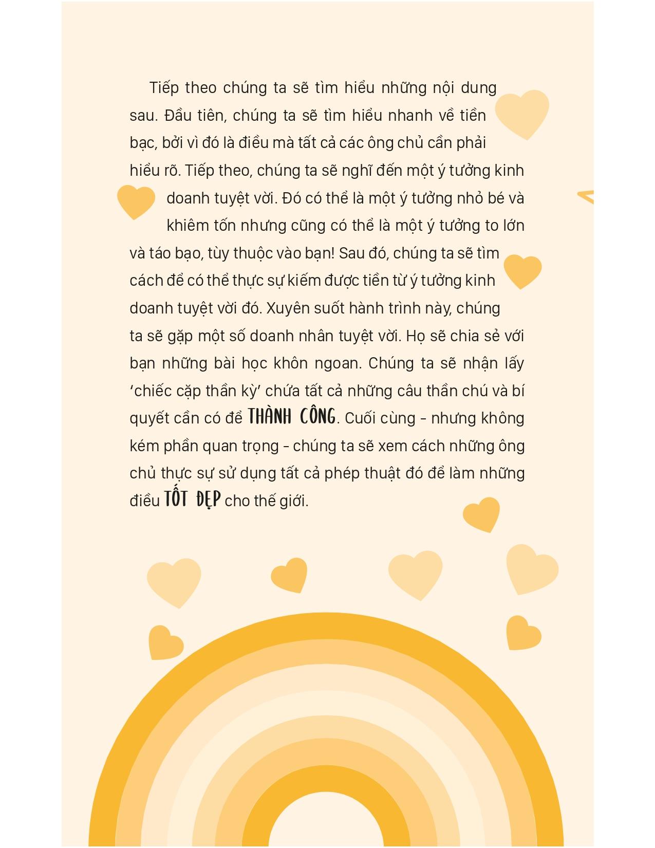 Cuốn sách “Dạy con quản lý tài chính thông minh” giúp bạn tiếp cận việc quản lý tài chính giống doanh nhân, dạy con cách sử dụng tiền như 1 ông chủ nhỏ. Khi có tư duy làm chủ, con bạn có thể sử dụng nó trong mọi lĩnh vực trong cuộc sống, cho dù đó là ở trường học, trong thể thao hay để tìm ra những cách tuyệt vời cho thế giới trở nên tốt đẹp hơn.