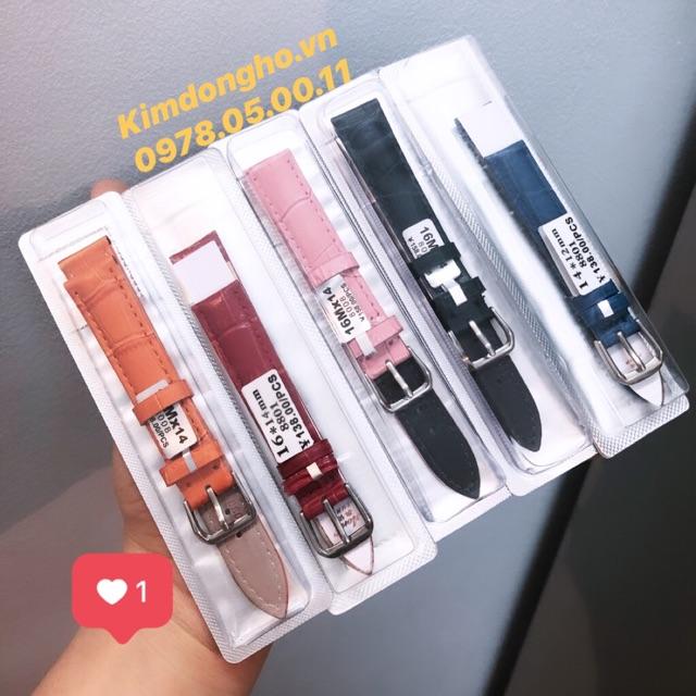 Dây da đồng hồ nam nữ da bò thật dập vân cá sấu bền đẹp (Chọn màu, chọn size)
