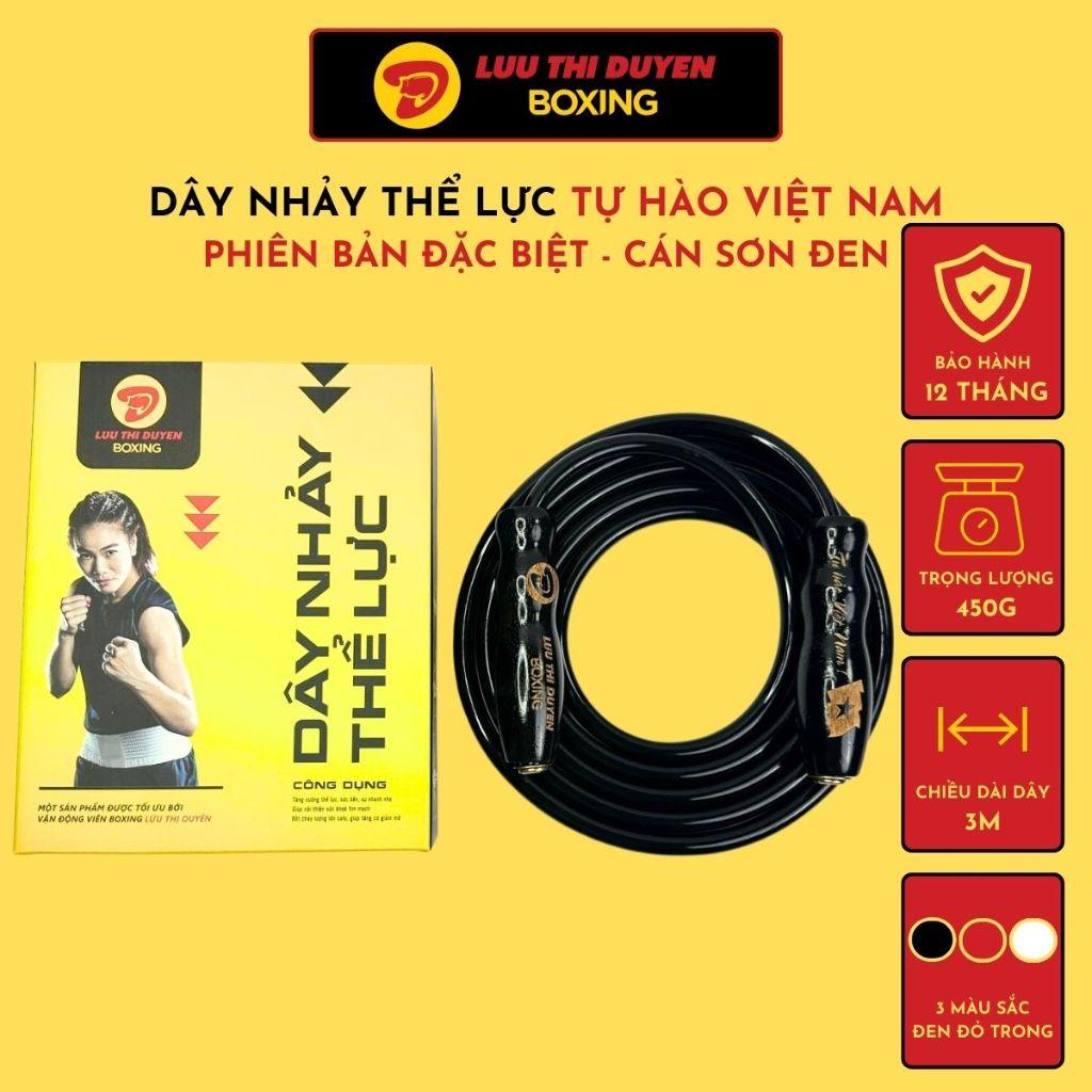 Dây Nhảy Thể Lực Tự Hào Việt Nam - Lừu Thị Duyên Boxing - Bản Đặc Biệt - Cán Sơn Đen - Nặng 450g - Dây PVC Cao Cấp Chống Mài Mòn - Bảo Hành 12 Tháng - Tùy Chỉnh Chiều Dài Dây