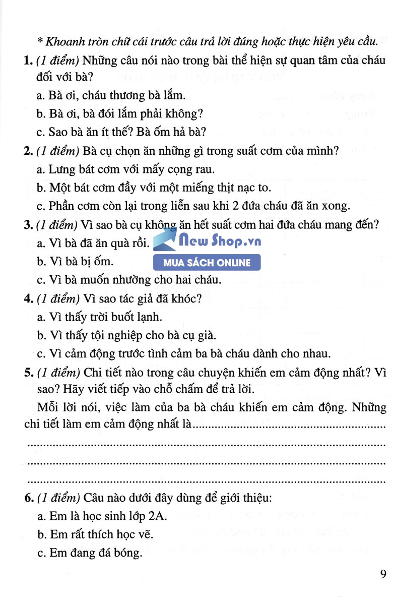 Hệ thống các đề kiểm tra ôn luyện kiến thức cơ bản, tác giả còn đưa vào những bài tập có độ khó cao hơn để các em hiểu đầy đủ và sâu sắc hơn nội dung, nghệ thuật của văn bản.