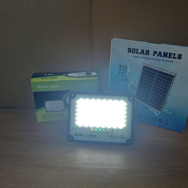KHÔNG TỐN TIỀN ĐIỆN -> ĐÈN LED NĂNG LƯỢNG 100W Không sử dụng điện lưới do dùng năng lượng mặt trời. Có tặng kèm remote, chỉnh nhiều chế độ Tự động hoạt động: Ban ngày