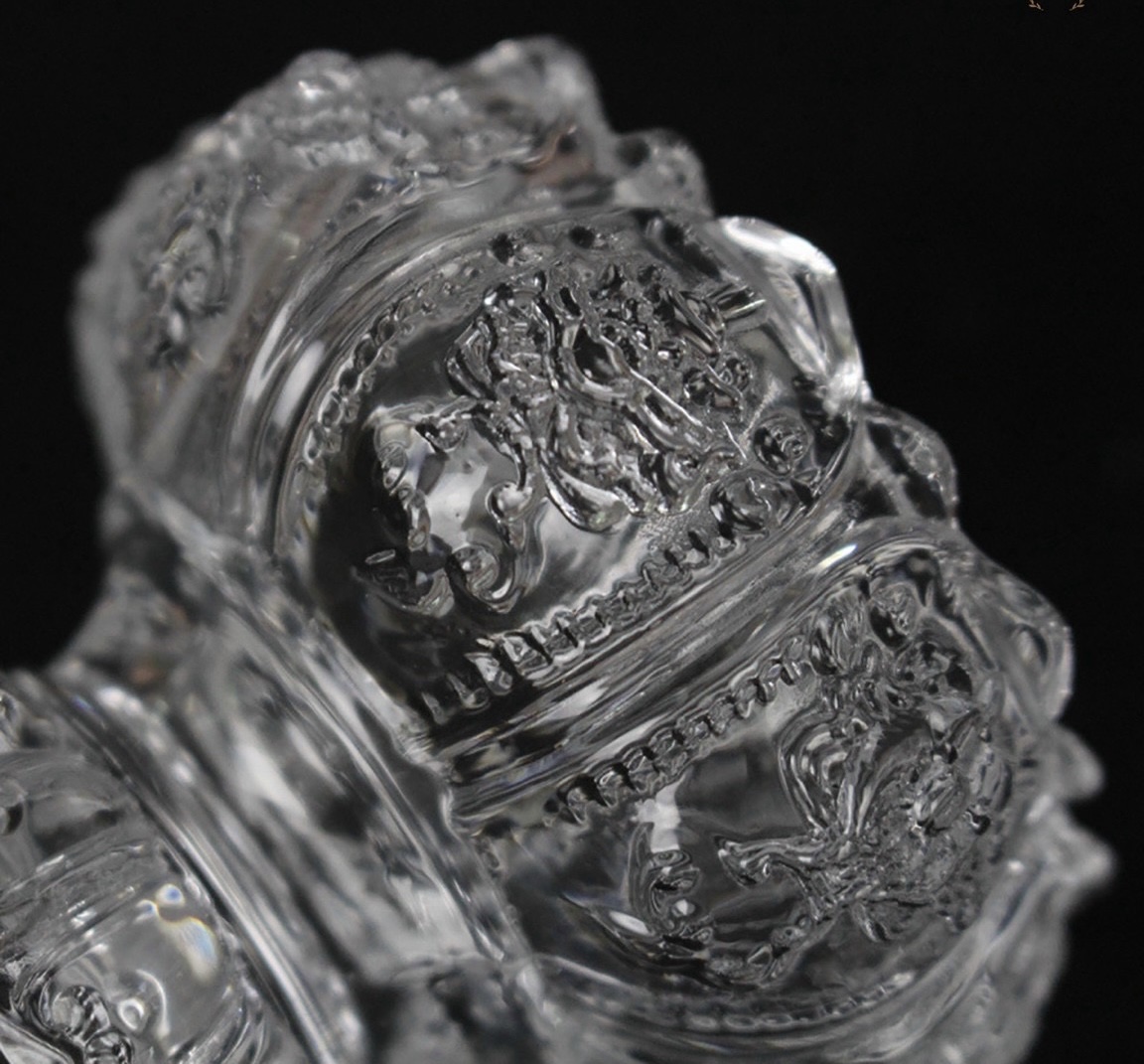 Cặp đèn thờ tay Phật cầm hoa sen với chất liệu giả lưu ly đúc trong và sáng tinh tế, kết hợp với chất liệu đồng và đá lưu ly nguyên chất làm đèn sáng