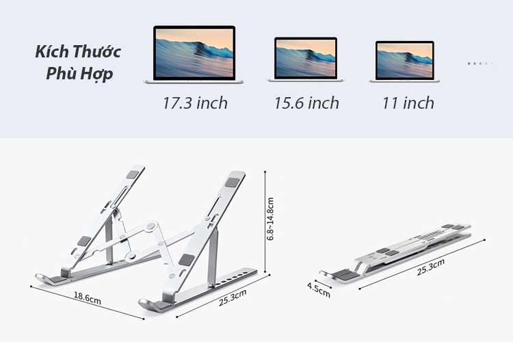 Đế Tản Nhiệt Cao Cấp Dành Cho Macbook, Laptop - Thiết Kế Sang Trọng - Tiện Ích - Dễ Dàng Chỉnh Độ Cao Và Gấp Gọn - Chất Liệu Hợp Kim Nhôm - Hàng Chính Hãng - VinBuy                                                           Đế tản nhiệt dùng cho Laptop & Tablet                                          Giúp bạn sử dụng máy đúng tư thế ngồi tốt cho sức khỏe                                                       Còn hỗ trợ máy laptop được tản nhiệt tốt hơn                                                       Thiết kế có thể xếp gọn lại dễ dàng theo theo                                          Có nhiều gốc độ cao điều chỉnh phù hợp mọi tư thế ngồi                                                    Sử dụng cho tất cả các dòng máy từ 11~17 inch                                                            Chất liệu bằng hợp kim nhôm cao cấp                                          Nhiều lớp nhựa silicon chống trày máy và cố định giá đỡ                                                            Chịu được tải trọng lớn đến 20kg                                                            Thiết Kế Đơn Giản Tản Nhiệt Nhanh                      Đế tản nhiệt có sự thiết kế gập gọn đơn giản điều chỉnh những góc độ nghiêng linh hoạt,                                            độ bám cố định chắc chắn để được tất cả các dòng laptop,                                     không gian tản nhiệt rộng thoải mái khi sử dụng không gây nóng máy.                                                       Tiện Lợi Cho Việc Mang Theo​                               Đế tản nhiệt phù hợp sử dụng ở bất cứ nơi đâu như ở nhà, ngồi quán cafe,   văn phòng hay đi du lịch đều được với sự gập lại đơn giản và chất liệu được làm bằng hợp kim siêu mỏng bền chắc                                      cũng không sợ dễ bị gãy khi mang theo bỏ trong balo hay túi xách.                                             Đế Tản Nhiệt Có Độ Bám Cố Định Cao           Khi sử dụng đế tản nhiệt người sử dụng quan tâm nhất là lúc đánh chữ máy dễ bị rung và bập bênh hay không.                Đây Đế Tản Nhiệt này được thiết kế các khung sườn chắc và có các miếng cao su tạo độ bám máy                                                  nên không có trường hợp xảy ra máy bị trơn trượt.                                                      Nhiều Góc Độ Điều Chỉnh            Một đế tản nhiệt có nhiều góc độ điều chỉnh linh hoạt như vậy rất phù hợp cho tất cả vị trí làm việc                            giúp cho chúng ta ngồi được lâu dài và cải thiện được công việc hiệu quả tốt hơn.                                           Khung Sườn Vững Chắc Và Cố Định Cao              Đế tản nhiệt có kết cấu hình tam giác tăng cường độ nghiêng vững chắc, phần giữa tạo thành 2 chữ M                                                       kéo ra gập lại dễ dàng và cố định máy.                                                  Tương Thích Nhiều Kích Thước​            Với kích thước gập gọn lại và mở rộng có thể điều chỉnh để được kích thước của tất cả các dòng máy laptop                                              từ 11 inch đến 17 inch sử dụng thoải mái và chắc chắn.