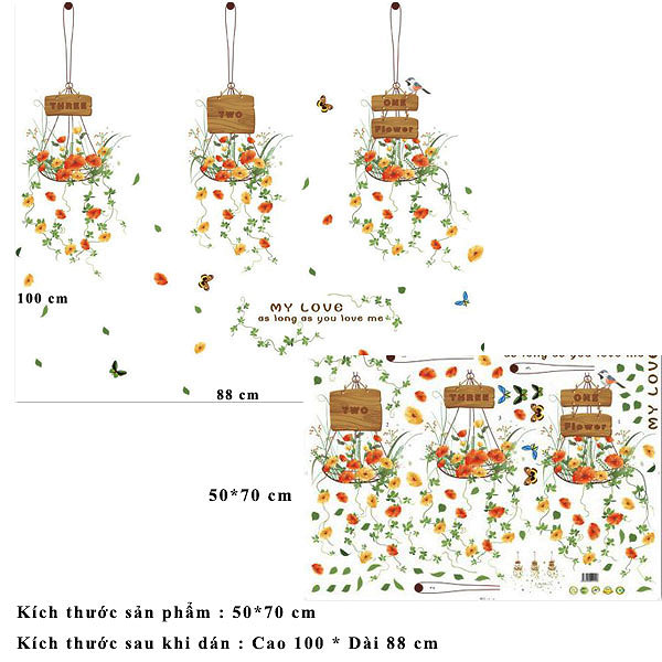 Kích thước :Decal dán tường 3 giỏ hoa cho XL7106