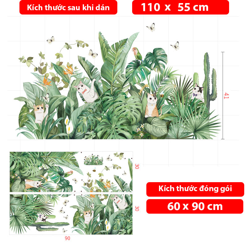 Video Giải thích quy cách đóng gói và cách dán sản phẩm [ Size Lớn ] Decal dán tường kết hợp Lá xanh - Bụi Tre và Sen AM9104+0779C+XY1097AB Kích thước sản phẩm khi đóng