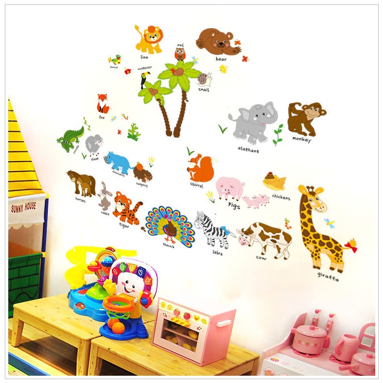 ✨Decal trang dán tường vườn thú tiếng anh 3 AmyShop (68 x 126 cm)