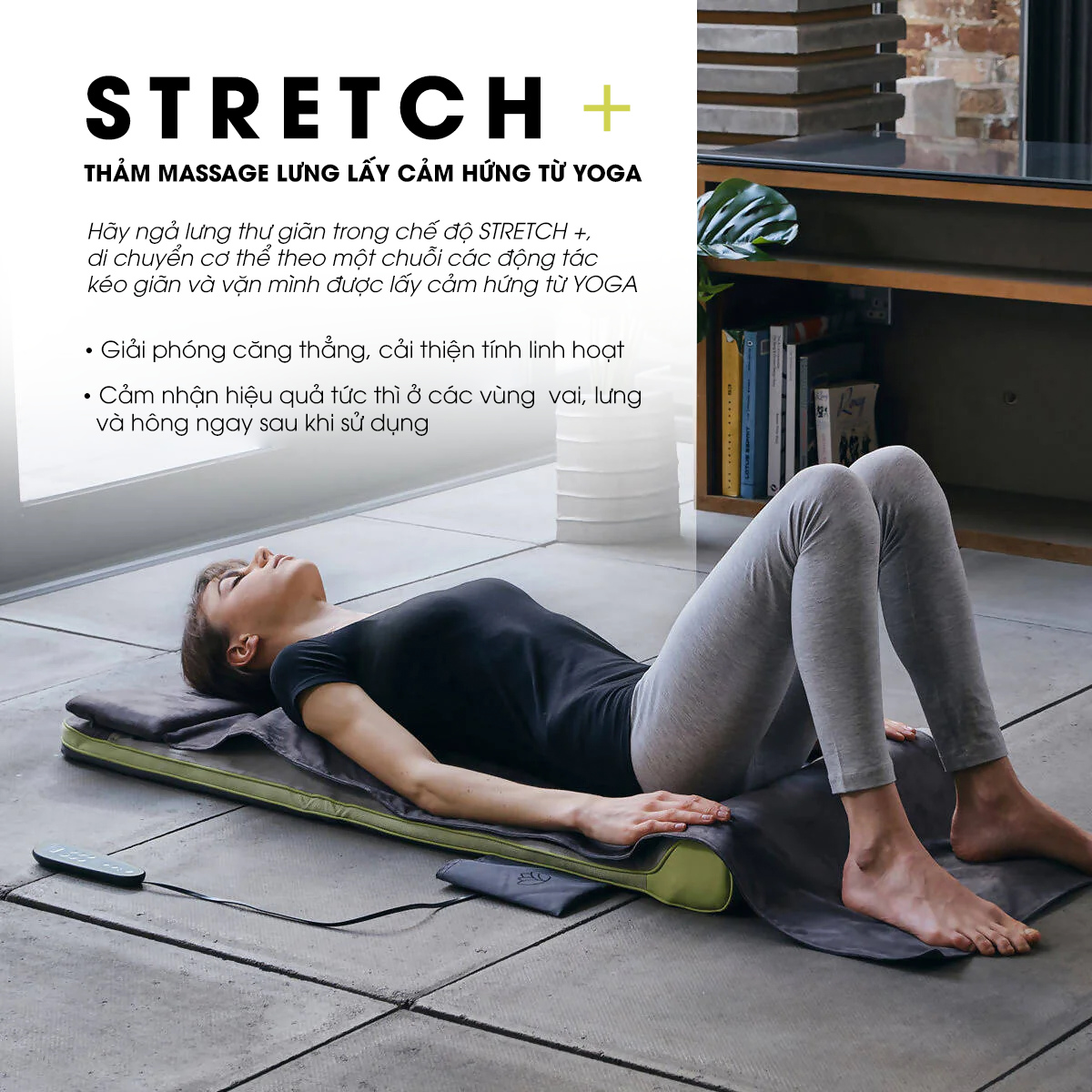 Công nghệ massage khí nén với 7 túi khí được điều khiển độc lập Mô phỏng chính xác các tư thế Yoga tác động đến phần cơ lưng hông vai 6 Trương trình được lập
