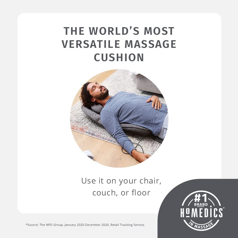 Đệm massage Homedics dùng nguồn điện 110V, có bảng điều khiển dạng cầm tay dễ dàng sử dụng với 2 kiểu massage: Giảm đau với 2 tốc độ massage shiatsu, các nút nhào sâu di chuyển lên và xuống toàn bộ lưng của bạn; thả lỏng cơ mông căng cứng với 3 tốc độ massage rung ghế.