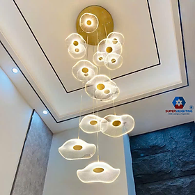 ✨Đèn chùm thông tầng lá sen SuperVilighting trang trí phòng khách cầu thang kiểu đèn chùm thả trần