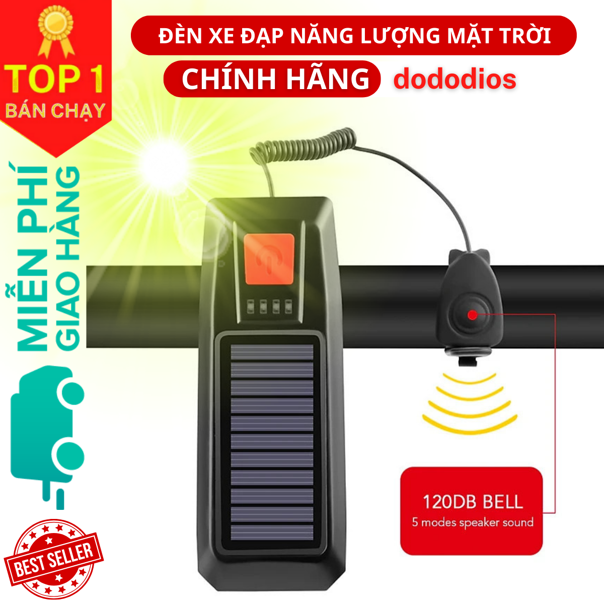 Bộ đèn còi năng lượng mặt trời đa năng hỗ trợ 3 chế độ sáng dùng cho xe đạp - Chính hãng dododios Thông tin sản