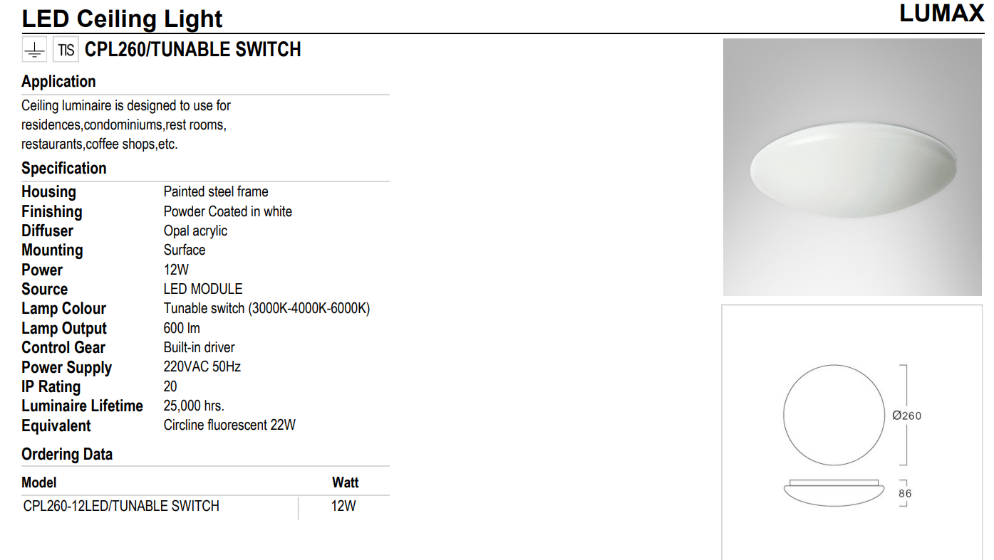 THÔNG TIN SẢN PHẨM - Thương Hiệu: Tholux - Tiêu chuẩn sản phẩm Châu Âu Đèn LED trần K50-12 với điện áp 220V phù hợp với mạng lưới điện dân dụng, giúp tiết kiệm năng