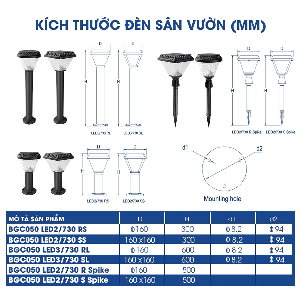 Đèn sân vườn Philips Deco solar spot BGC050 có những hình dạng RS (tròn nhỏ), RL (tròn lớn), R Spike (đinh tròn), SS (tròn nhỏ), SL (tròn lớn), S Spike (đinh tròn), chạy bằng năng lượng mặt trời rất ...