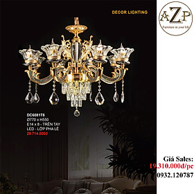 Đèn được thiết kế mang phong cách châu âu sang trọng, đẹp mắt phù hợp với nhiều không gian như: phòng khách,bếp, sảnh khách sạn , hội trườ Kích thước: _Loại 8 tay : 96*79