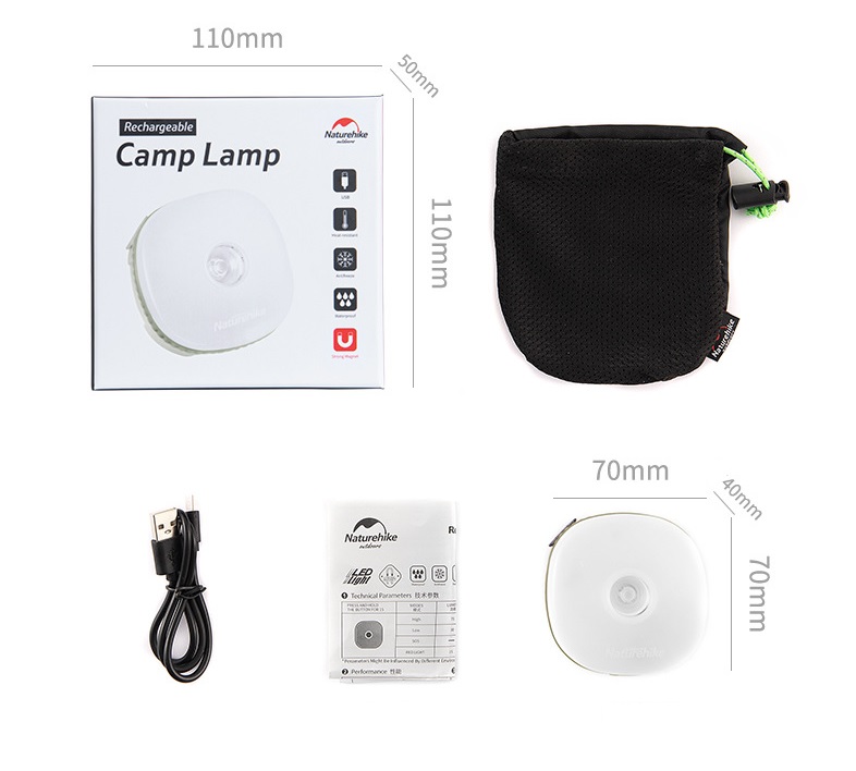 Đèn treo lều Naturehike NH16D300-C sạc USB + Đèn có thể chịu được nước mưa + Đằng sau đèn có nam châm để cố định đèn vào mặt phẳng kim loại + Thời gian chiếu