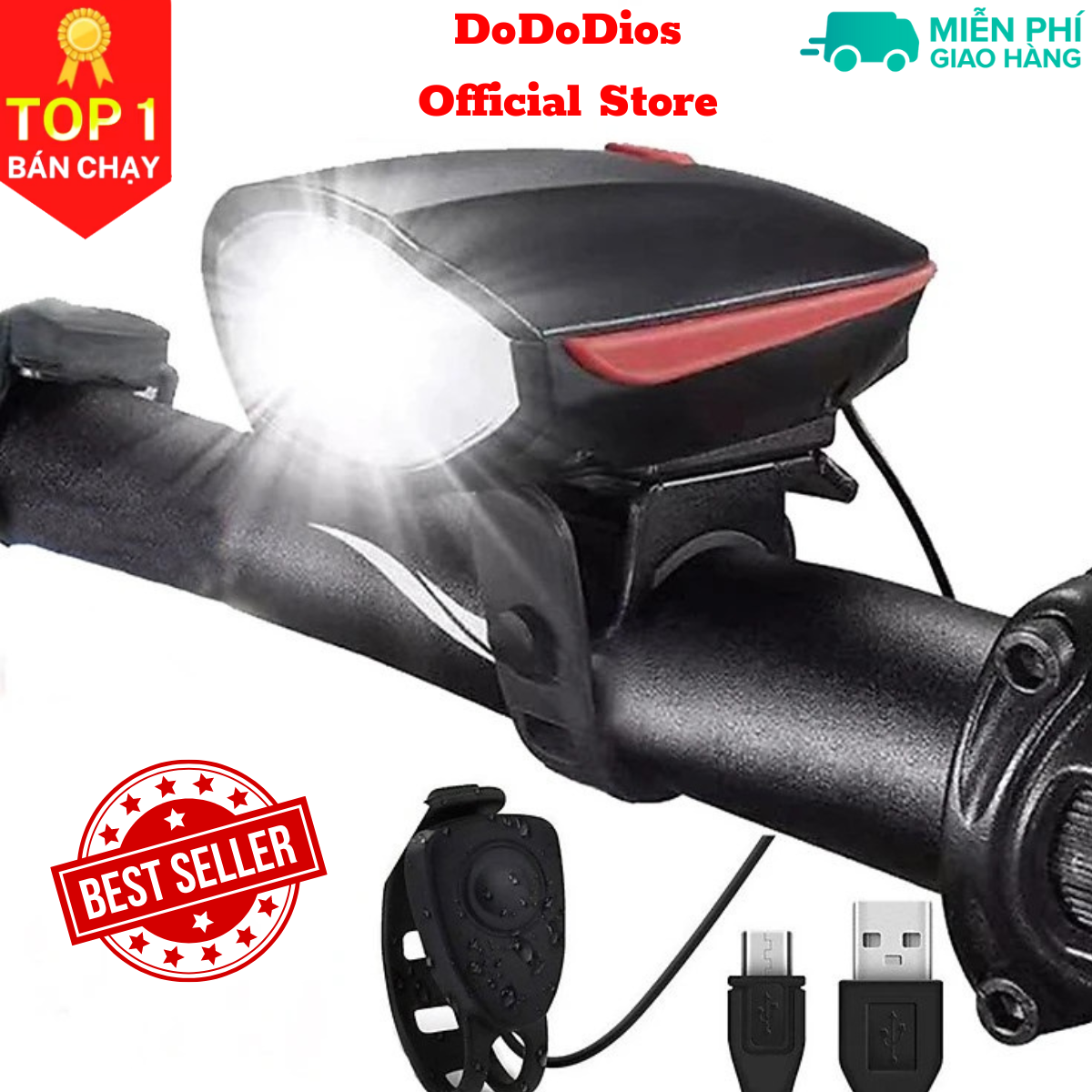 combo Đèn xe đạp thể thao siêu sáng có còi pin sạc chống nước Chính hãng dododios