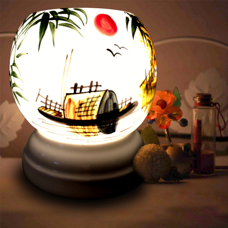 ✨Đèn Xông Tinh Dầu Gốm Bát Tràng Phong Cảnh Thuyền - Hàng Chính Hãng