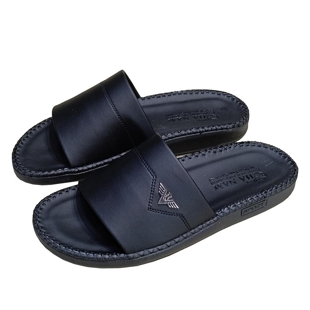 Dép Da Nam  - Lịch Lãm & Thoải Mái Mỗi Ngày - Chất liệu cao cấp: Sử dụng da tổng hợp chất lượng, mềm mại, bền bỉ theo thời gian, mang lại cảm giác êm ái và thoáng khí cho bàn chân. - Thiết kế sang trọng: Tông màu đen lịch lãm, kết hợp với đường chỉ may tinh tế và logo kim loại nổi bật – tôn lên vẻ nam tính, trưởng thành. - Đế chống trượt: Đế EVA siêu nhẹ, độ đàn hồi tốt, kết hợp vân đế tăng độ ma sát – an toàn khi di chuyển trên nhiều bề mặt. - Form ôm chân: Thiết kế bản quai ngang rộng, ôm gọn bàn chân nhưng không gây bí bách, dễ xỏ vào – thích hợp cho người trung niên và người lớn tuổi. - Ứng dụng đa năng: Phù hợp sử dụng trong nhà, đi dạo phố, đến văn phòng hoặc các dịp gặp gỡ thân mật. Lựa chọn tuyệt vời cho quý ông yêu thích sự thoải mái, đơn giản nhưng vẫn giữ được nét tinh tế trong từng bước chân.