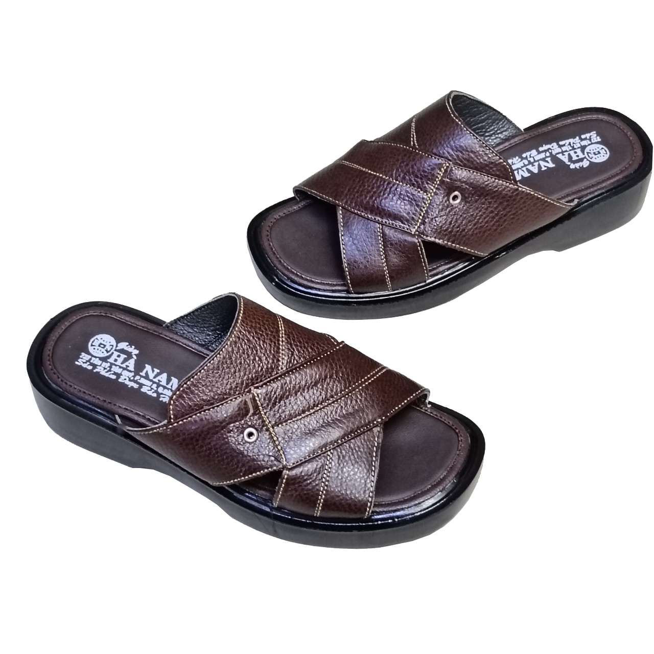 Dép Nam Quai Ngang Da Bò Thật HÀ NAM Đế Cao Dành Cho Người Thấp DN2058 - Giày Dép Được Gia Công Tại Xưởng Shop - Hoàn Trả Tiền 100% Hoặc 1 Đổi 1 Nếu