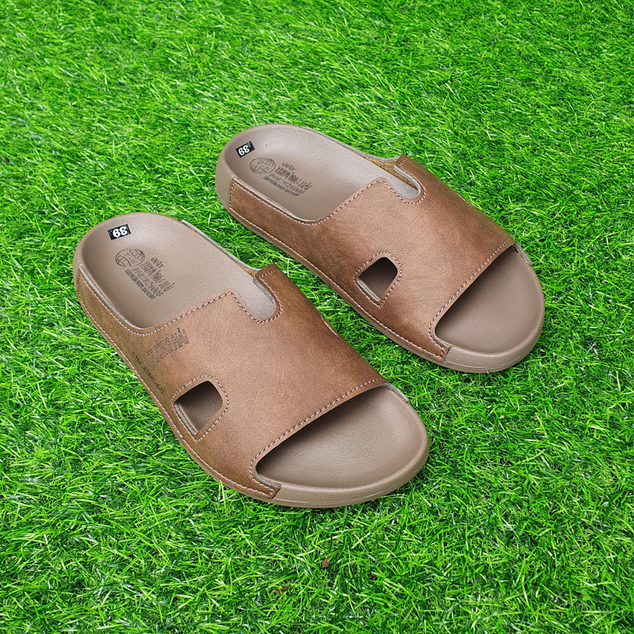 Dép nam quai ngang 1 bản da bò Trường Hải màu nâu