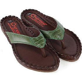 ✨Dép nữ Huy Hoàng da đà điểu màu xanh rêu HT7409