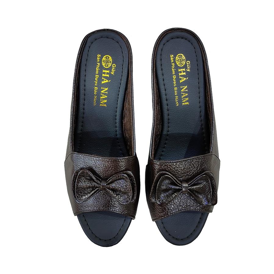 Dép Nữ Quai Ngang Đế Xuồng HÀ NAM Da Bò Thật Cao Cấp DNU2138