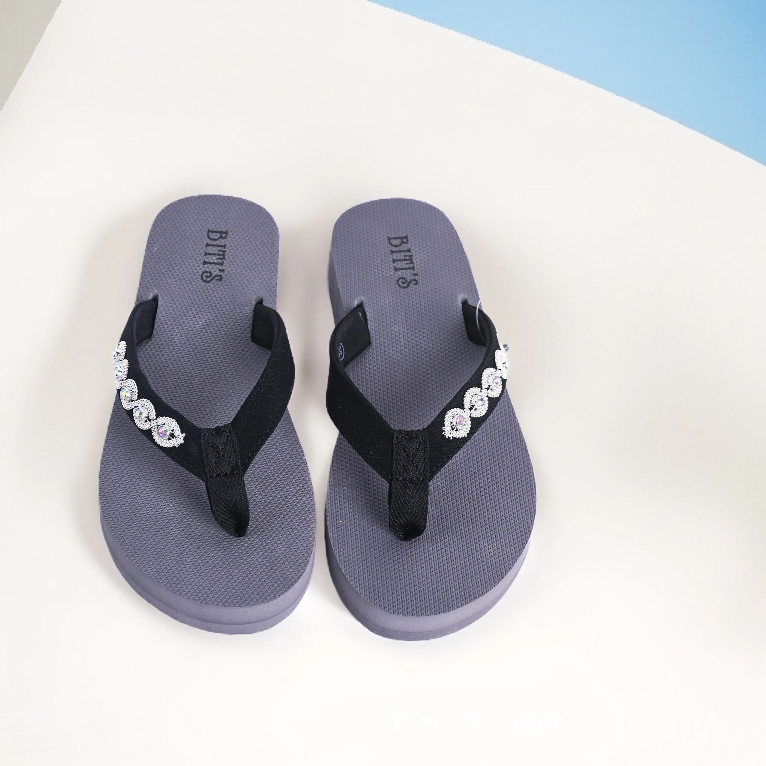 Đế xám quai đen đính đá(B)