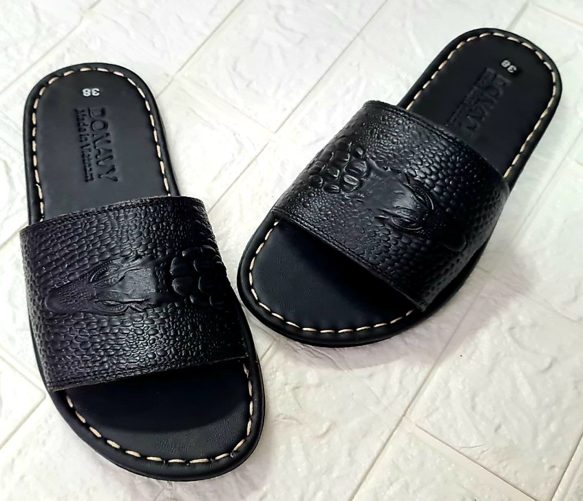 DÉP NAM BA QUAI DA BÒ,QUAI CÓ GẮN KHUY ĐẸP MẮT Dép quai ngang cá sấu da bò 100% Chất liệu: Da bò thật thật 100% da bò tự nhiên Đế cao su tốt đi
