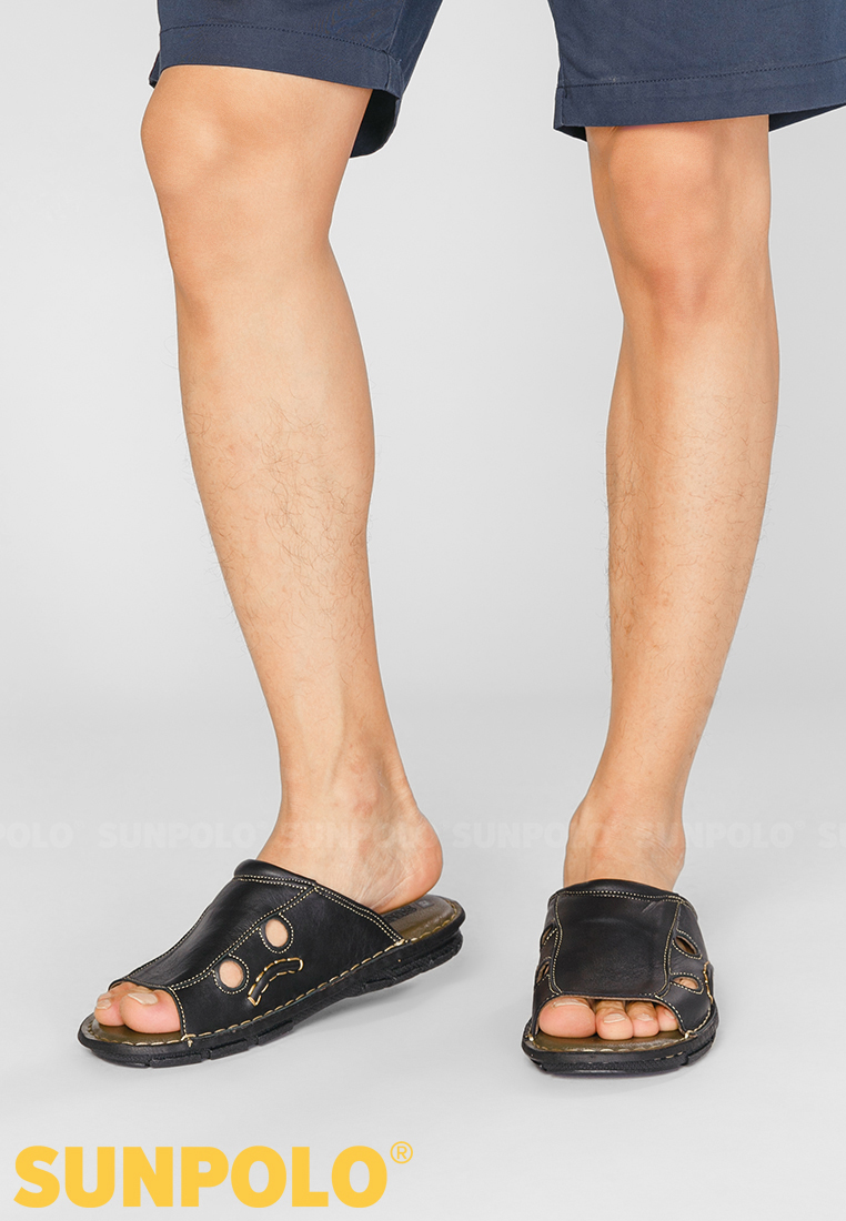 Mua tại Tiktok- Dép Quai Ngang Nam SUNPOLO AQN015 bền đẹp với quai dép làm từ chất liệu da thật 100% êm ái được may khâu tỉ mỉ, chắc chắn kết hợp đế cao su nhiêt dẻo cao cấp mang lại sự thoải mái tối đa cho các quý ông di chuyển thường ngày
