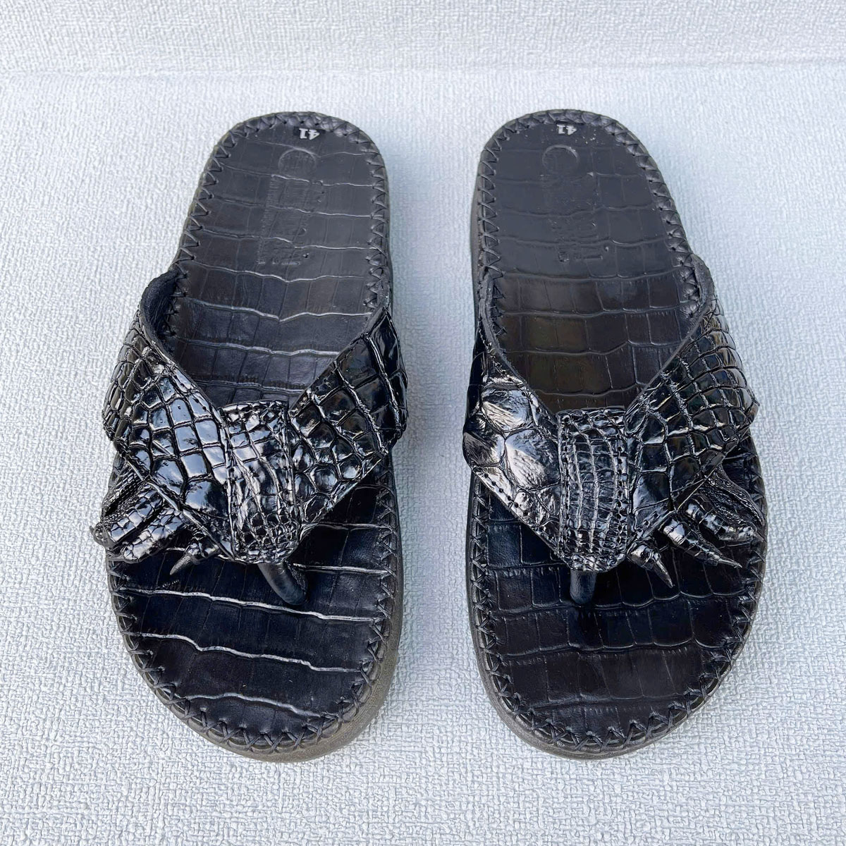 Quai dép làm bằng da cá sấu, với họa tiết móng cá sấu đặc trưng được lựa chọn từ da cá sấu trưởng thành nên da mềm, mịn và bóng đẹp tự nhiên, bền và đẹp nhất của cá sấu.