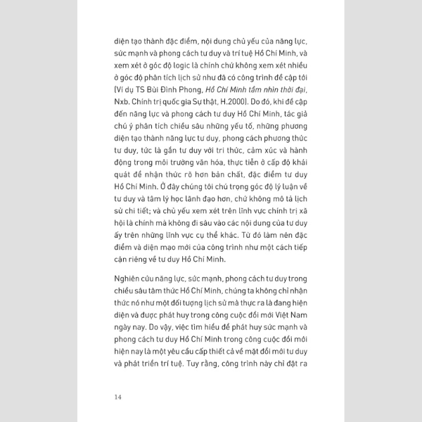Mã hàng 8934974204350 Tên Nhà Cung Cấp NXB Trẻ Tác giả TS Hồ Bá Thâm NXB Trẻ Năm XB 2024 Ngôn Ngữ Tiếng Việt Trọng lượng (gr) 227 Kích Thước Bao Bì 20.5 x 13 x 1.1 cm Số trang 224 Hình thức Bìa Mềm   Di Sản Hồ Chí Minh - Sức Mạnh Tư Duy Hồ Chí Minh Tác phẩm Sức mạnh tư duy Hồ Chí Minh được hoàn thành là tiếp tục hướng nghiên cứu triết học và tâm lý học lãnh đạo về tư duy và trên cơ sở một số chuyên đề nghiên cứu của tác giả, tập trung vào ba chủ đề, bốn góc độ từ khái quát đến cụ thể. Trong mỗi vấn đề sau đây, tác giả chỉ đề cập tới một vài khía cạnh chính. Sách có 5 chương: 1- Các dạng tư duy, trí tuệ thông minh và quá trình hình thành tư duy, trí tuệ thiên tài Hồ Chí Minh. 2- Tư duy Hồ Chí Minh–tư duy Marxist trong chiều sâu dân tộc và thời đại. 3- Tư duy Hồ Chí Minh gắn tình cảm với tri thức, tư tưởng với hành động. 4- Phong cách tư duy Hồ Chí Minh với việc phát huy nhân tố con người. 5- Phát huy sức mạnh, phong cách tư duy Hồ Chí Minh trong đổi mới và hiện đại hóa. Trong quá trình nghiên cứu và trình bày những vấn đề đó, tác giả không chỉ làm rõ về phẩm chất tư duy Hồ Chí Minh mà còn qua đó làm rõ thêm lý luận về tư duy, nhất là góc độ năng lực và phong cách tư duy của vị lãnh tụ cách mạng này.