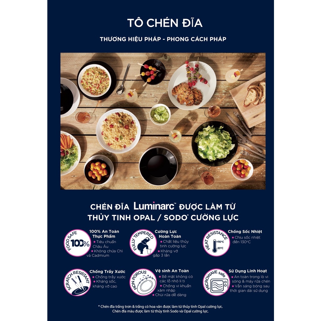 - Tất cả sản phẩm tô, chén, đĩa của L đều có thể sử dụng trong lò vi ba & máy rửa bát.